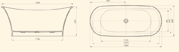 U vany RETRIA nejsou součástí podpůrné nohy a přepad. Ozdobné nohy lze objednat v bílé barvě, chromu a bronzu.